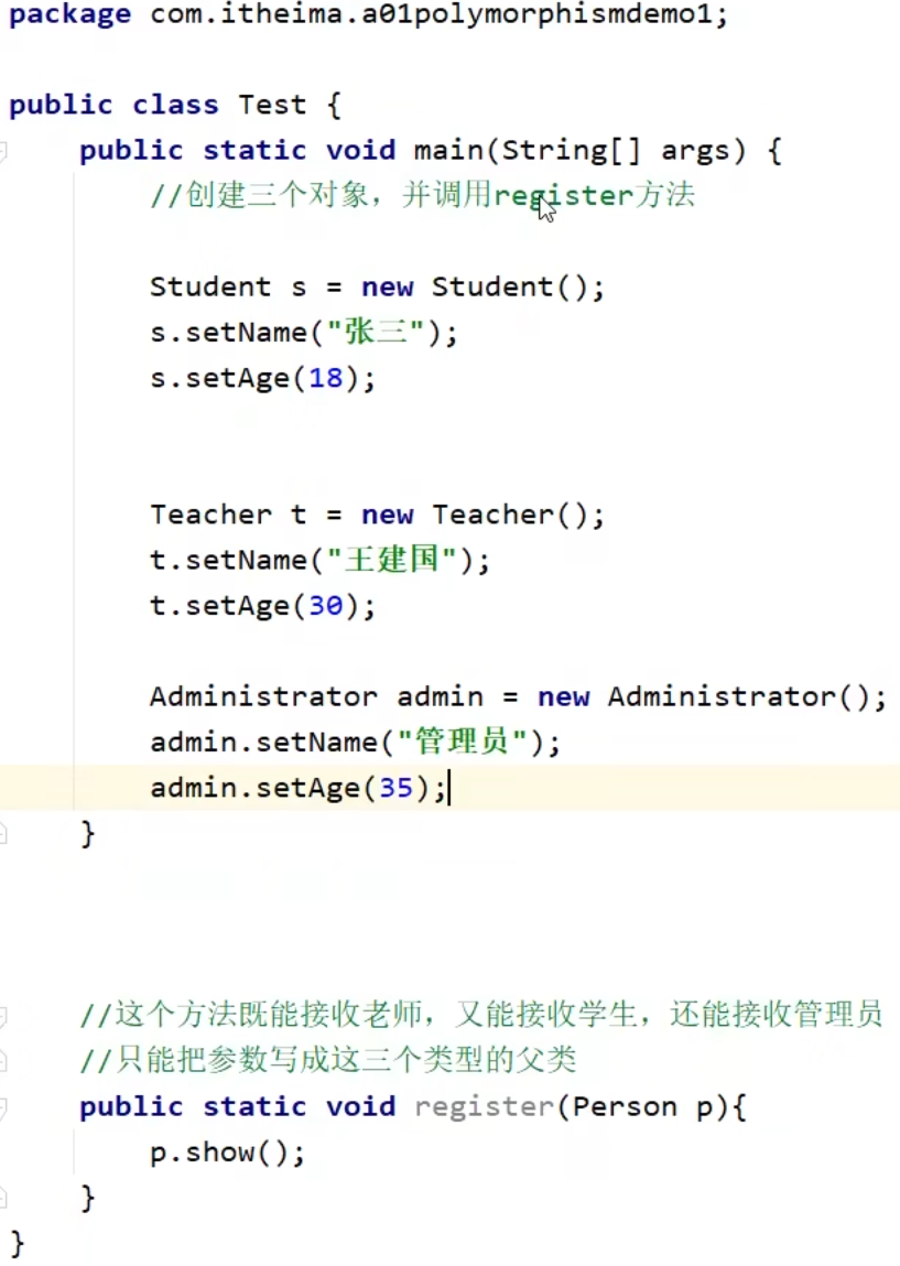 在main中调用类名的方法时,其方法的对象可能是多个对象的共同对象